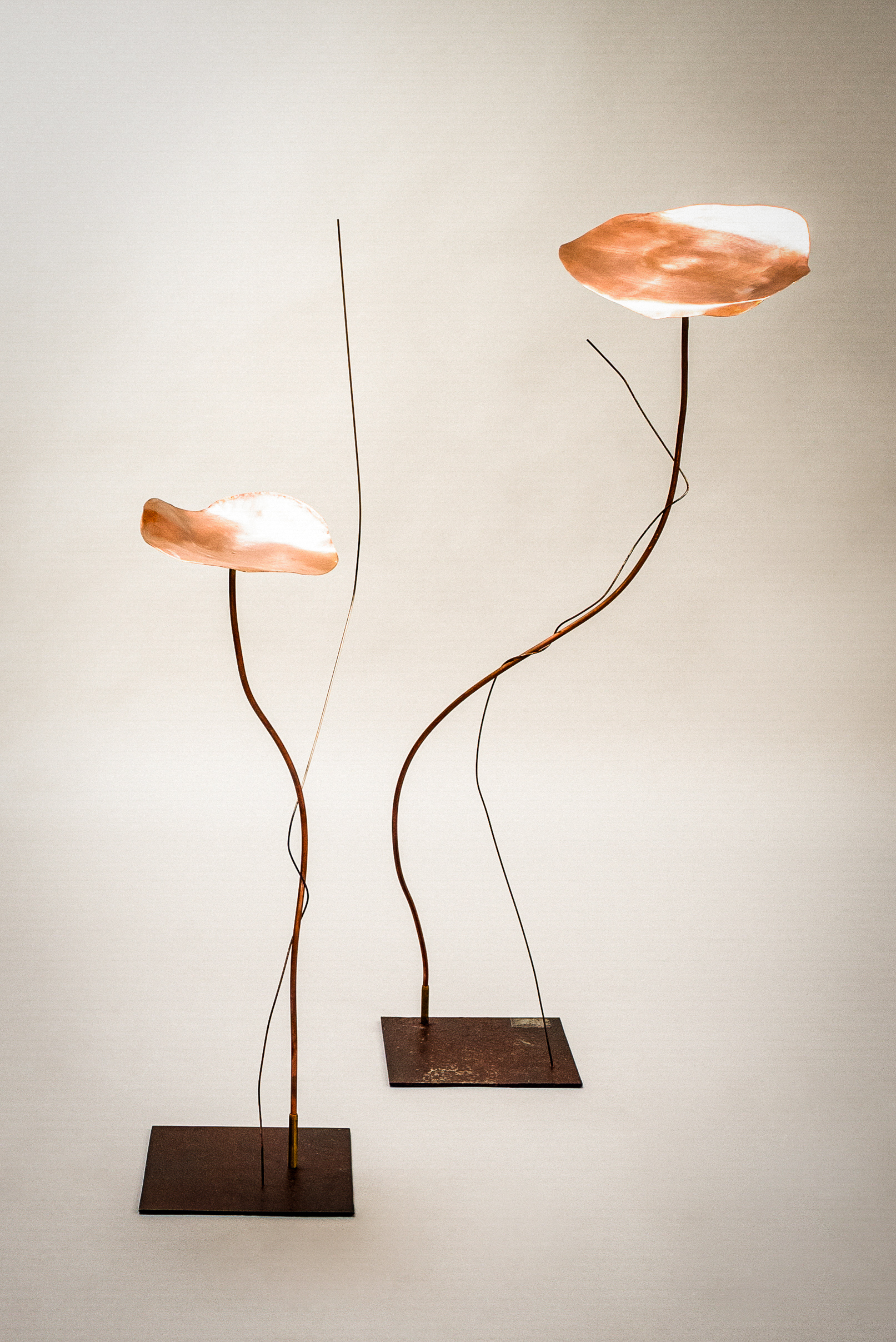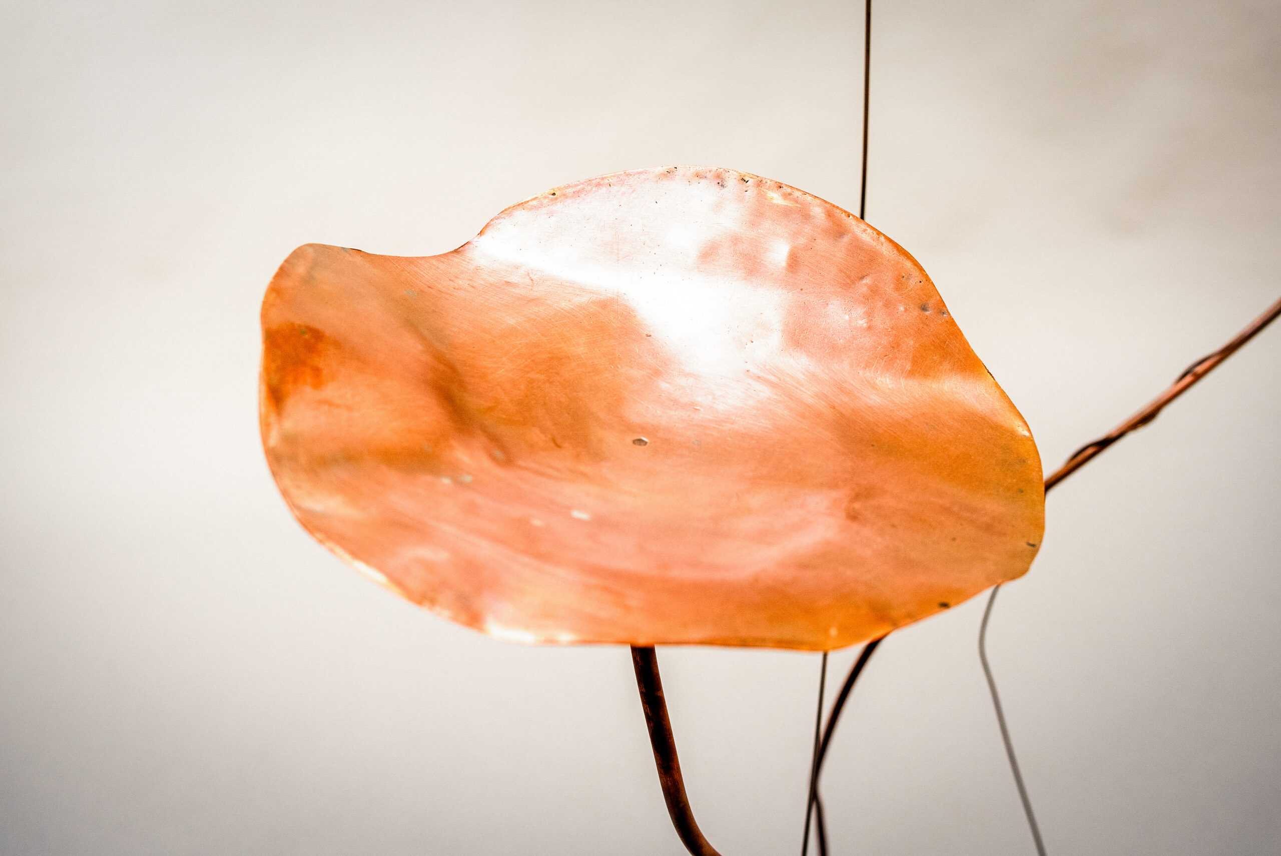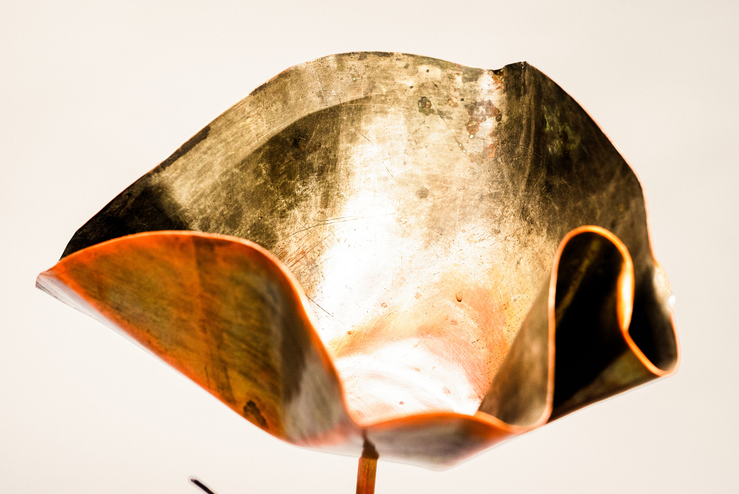 This poppy flower is crafted from an old copper “saucière” and can be used both indoors and outdoors. The flower stem was made from copper pipes of the air conditioning system in our atelier.
