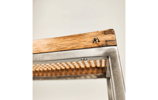 Crafted from a bold mix of wood and iron, this chair is a small architectural statement. The backrest once lived the high life as part of a bar chair in an old hotel. The woven seat comes from one of the oldest houses in Guignicourt-sur-Vence. And that slim footrest? A quiet treasure made from pieces from a house in Ottignies.